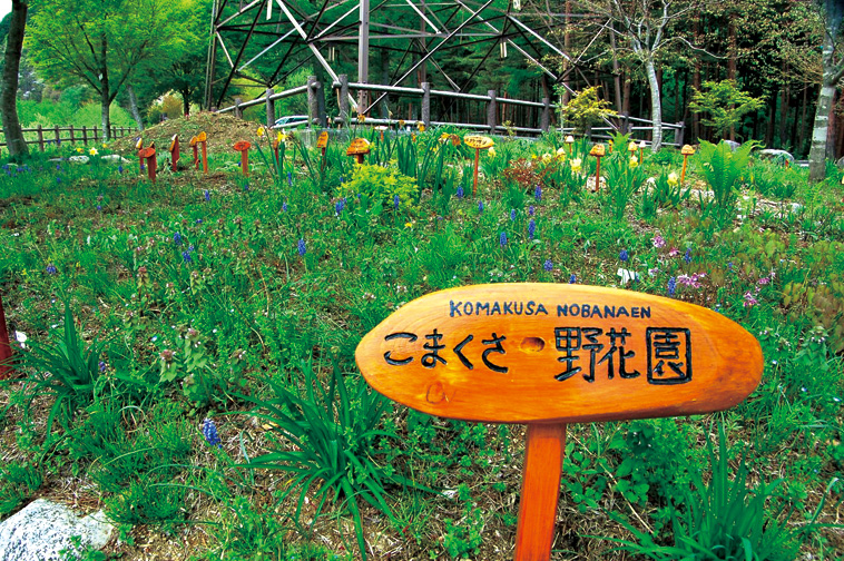 1,800㎡の「花の庭」は駒ヶ根の原風景をイメージした「こまくさ野花園」原種ユリを集めた花壇「秋の七草園」など春から晩秋まで300 種類余の山野草の花が咲き、訪ずれる人々に癒しを与えています。寄せ植え講座は初心者でも気軽に楽しめ、山野草のミニ知識も身につきます。