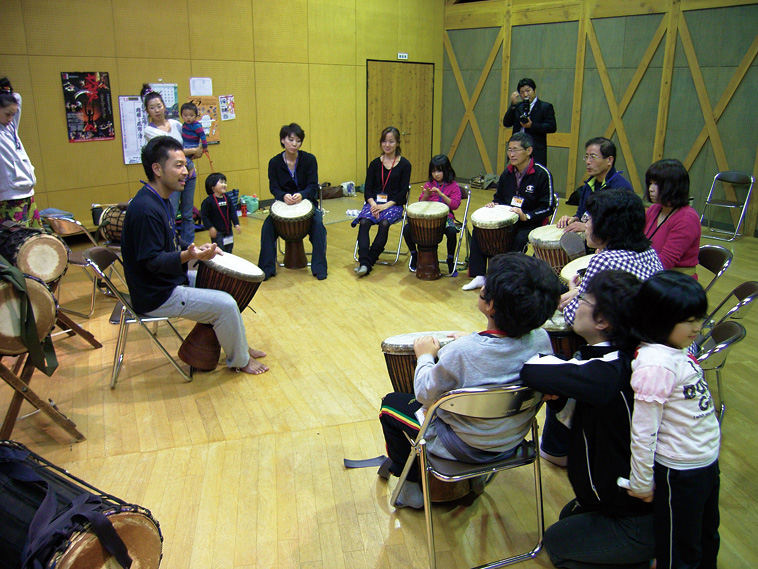 西アフリカのタイコ、ダンス、歌のコンサートやワークショップをやって笑顔の輪を広げています。
